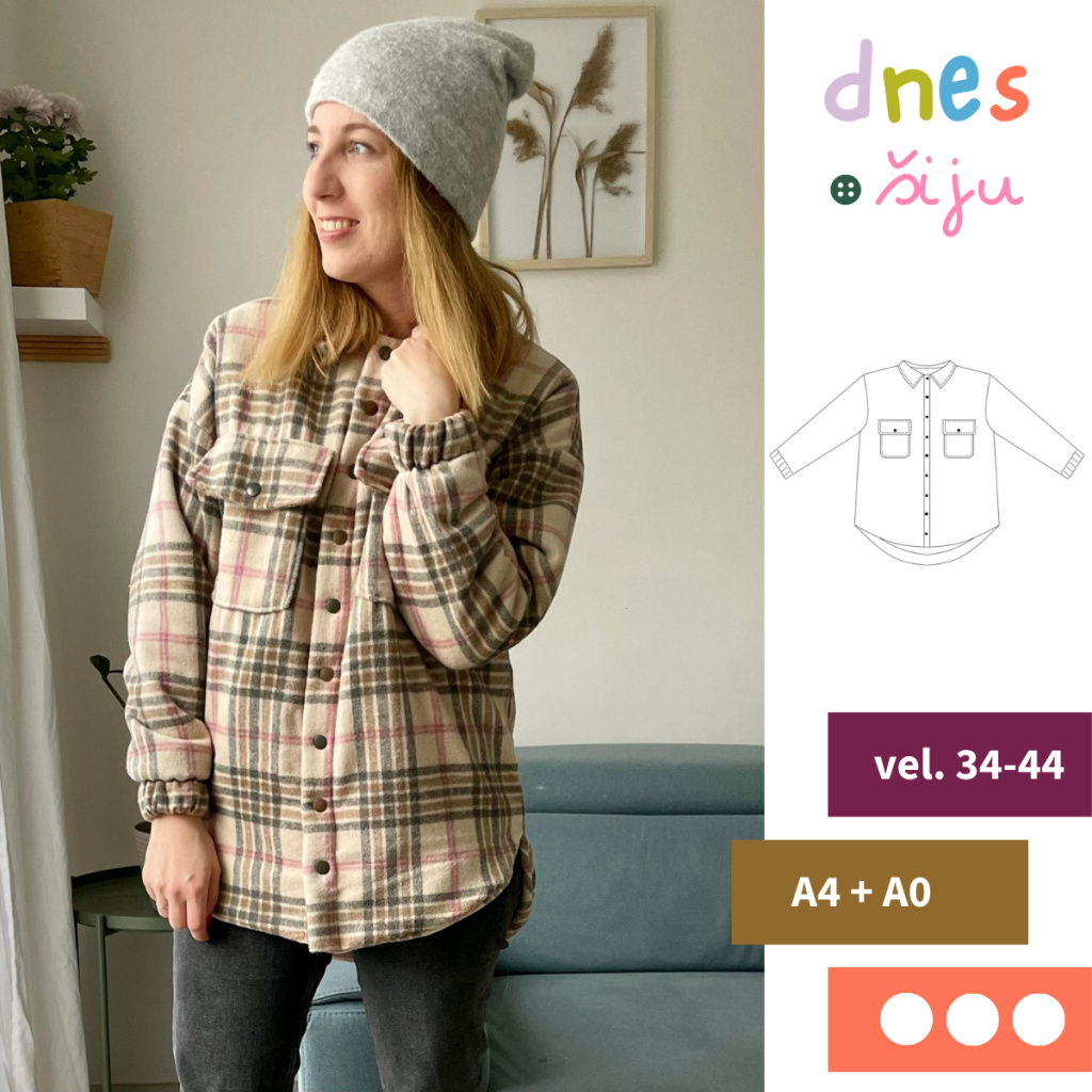 Střih na dámskou košilovou oversized bundu.