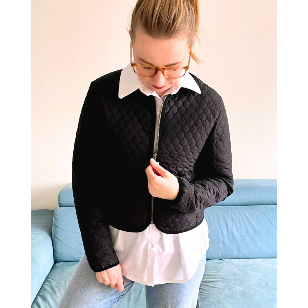 Střih na dámskou prošívanou projmutou bundu na zip s kapsami.