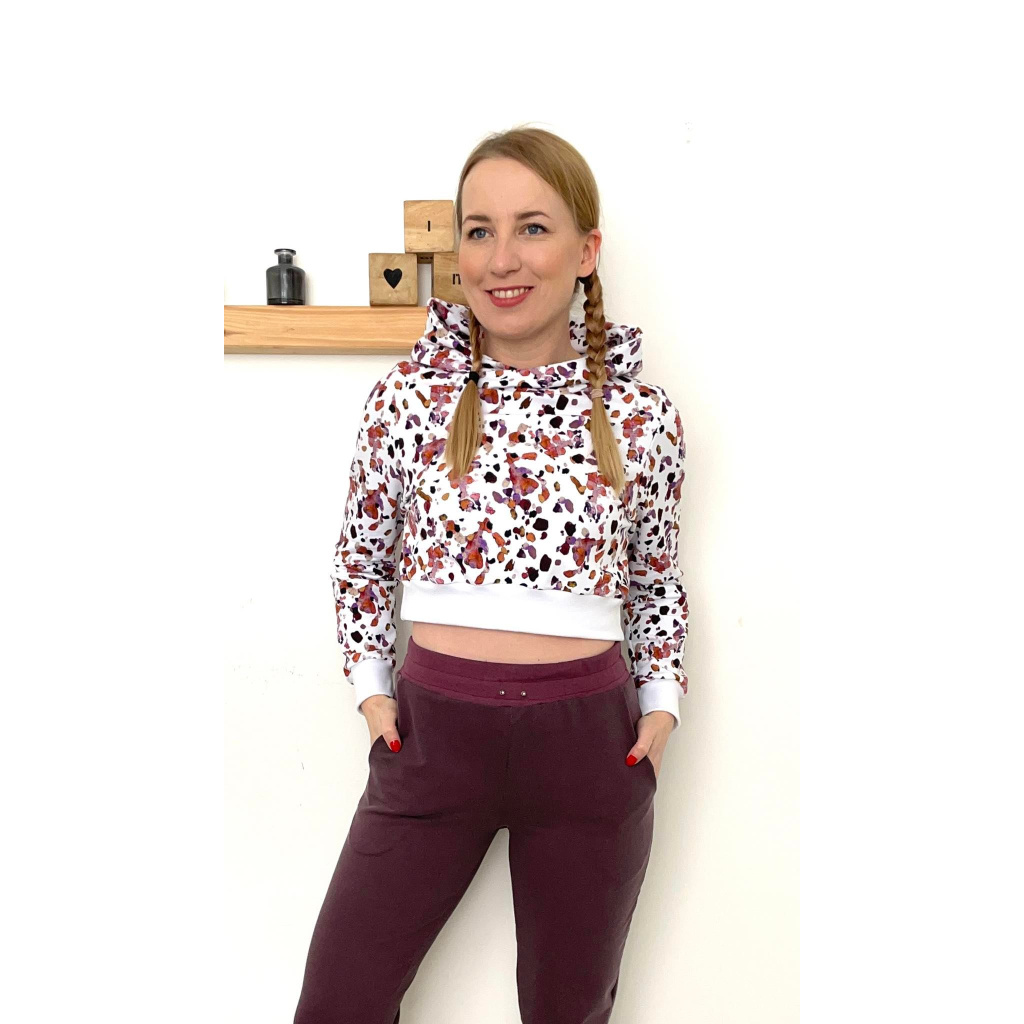 - Spotřeba materiálu (š.160 cm) : 1,2 m na klasickou mikinu a 1 m na crop mikinu