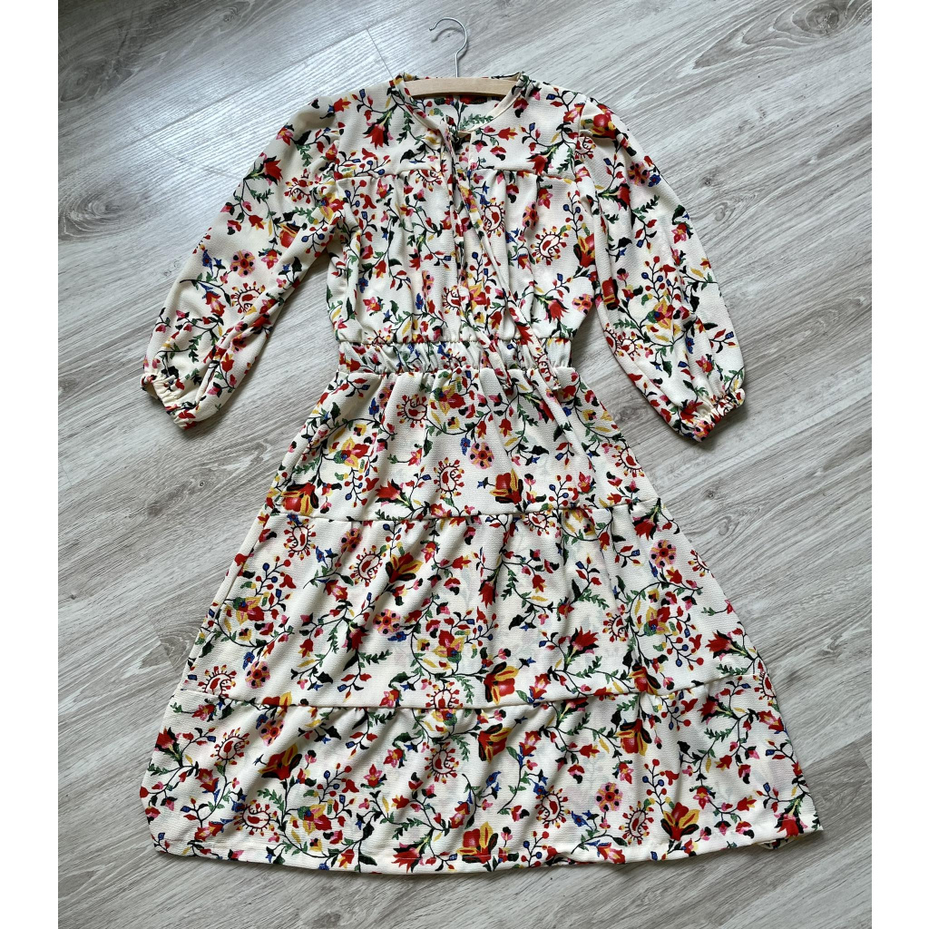 - Ostatní materiál: pruženka šíře 2 cm (na rukávy), pruženka šíře 5 cm (do pasu), proužek látky šíře 4 cm na olemování průkrčníku a vázání