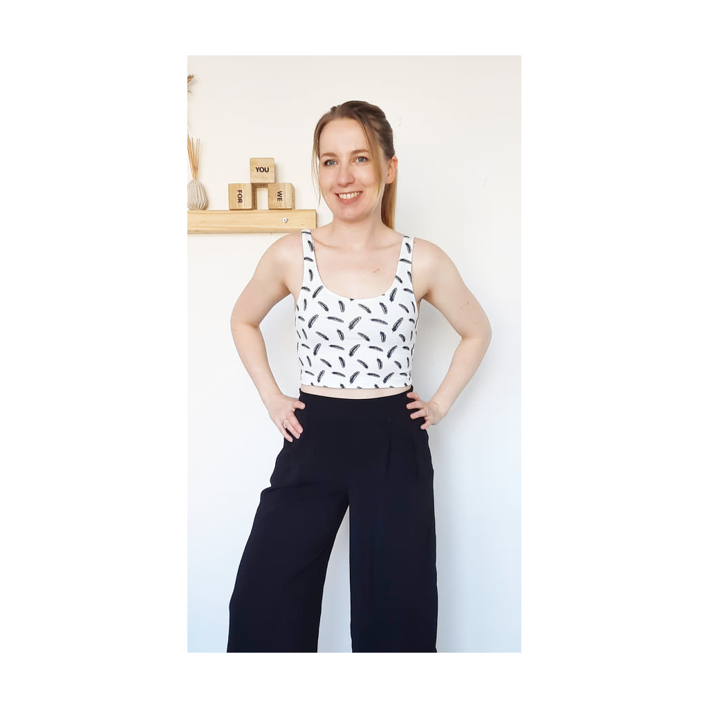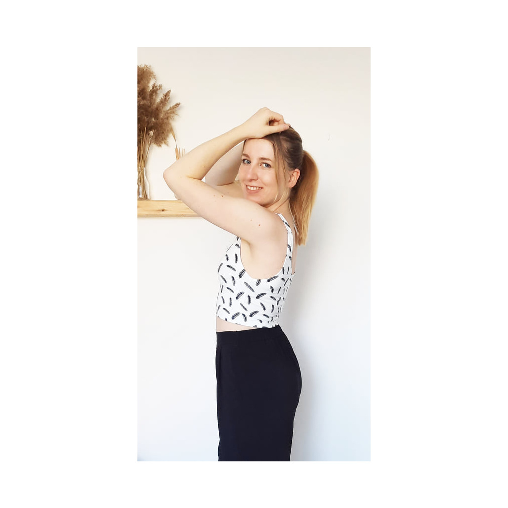 - Spotřeba materiálu (š.160 cm) : 0,7 m na klasické tílko a 0,5 m na crop top