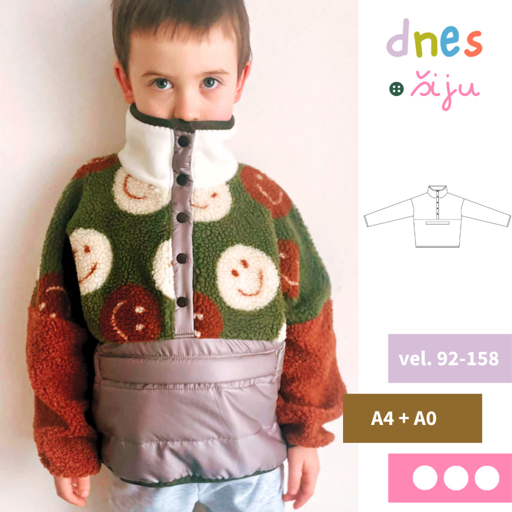 Tištěný střih najdete tady: https://www.dnessiju.cz/detska-mikina-shaggy-tisteny-strih/