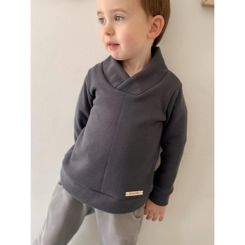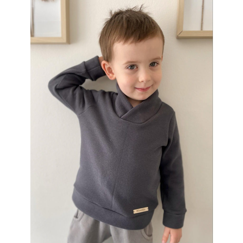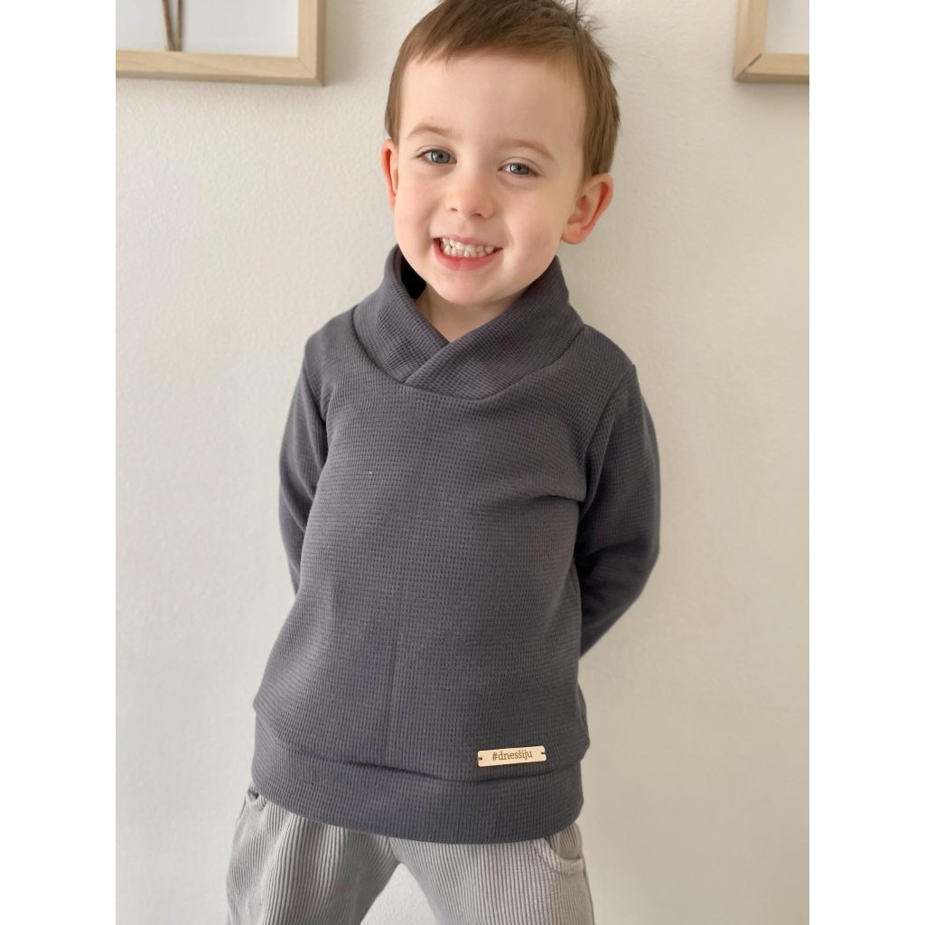 Střih na dětskou mikinu s vysokým kříženým límcem.