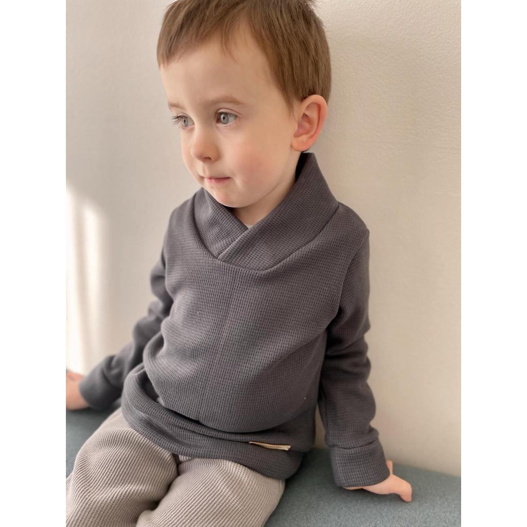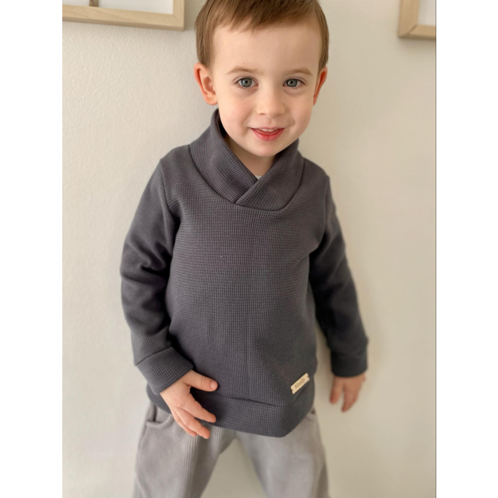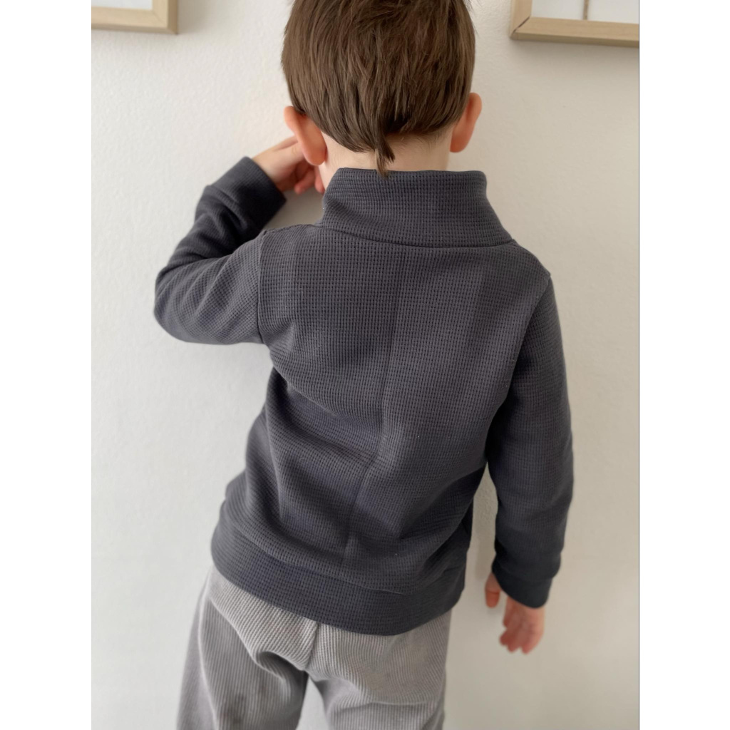 Střih na dětskou mikinu s vysokým kříženým límcem.