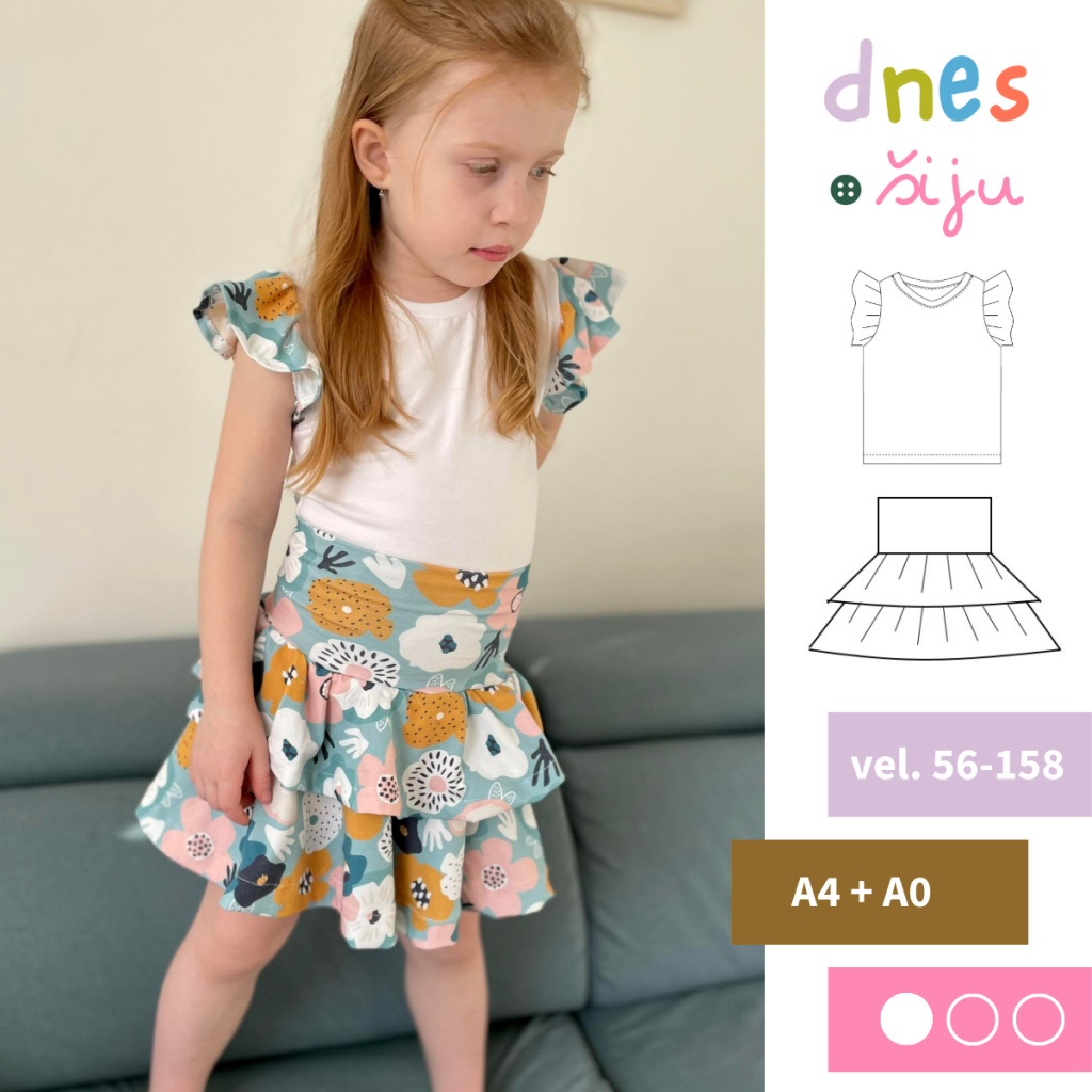Střih na dětskou soupravu trička a sukně s volánky.