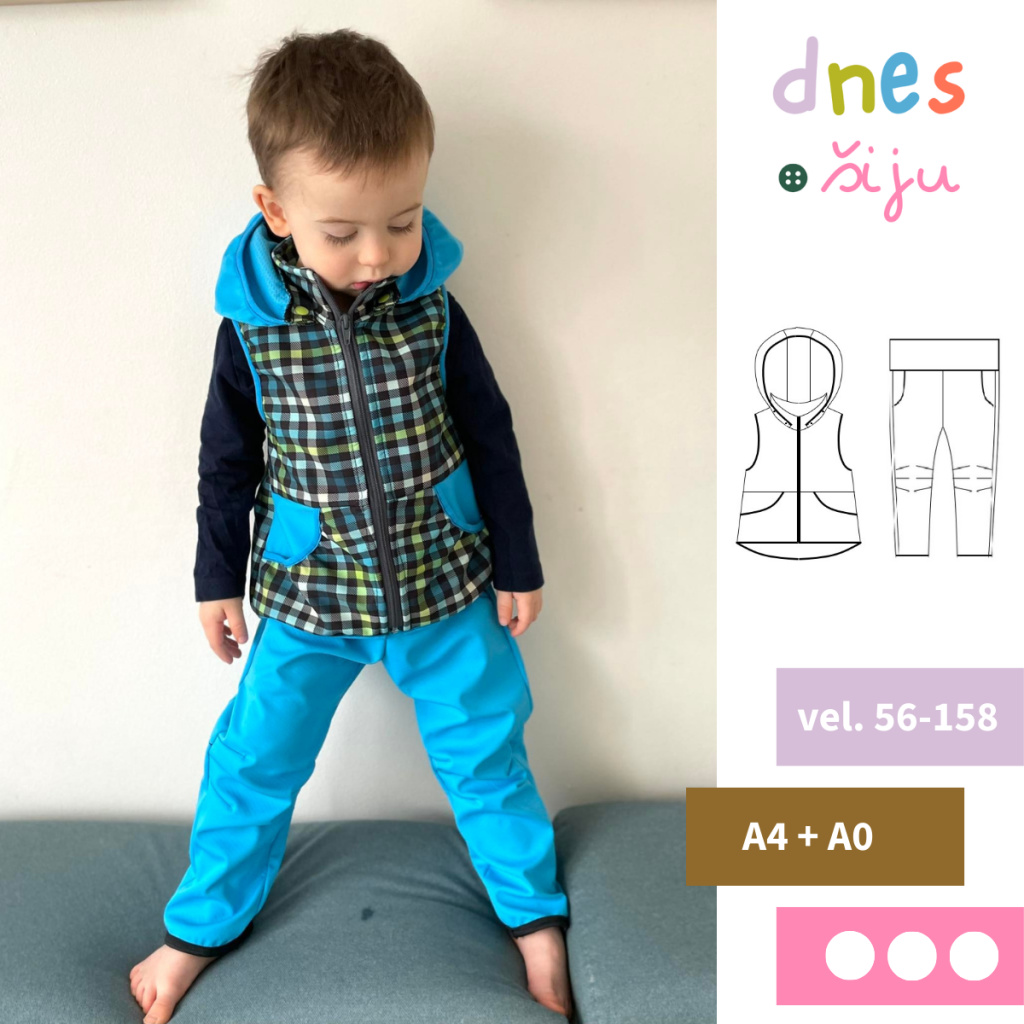 Střih na dětskou soupravu softshellových kalhot a vesty.