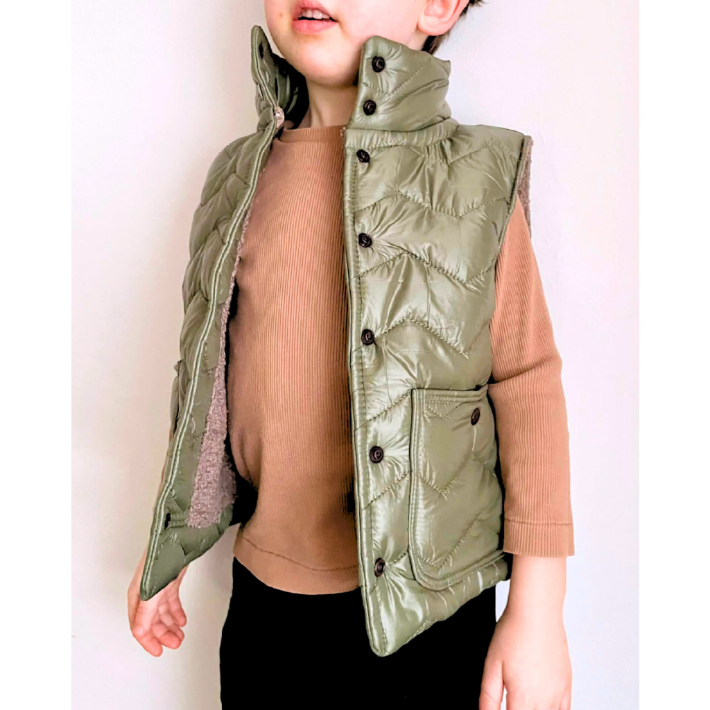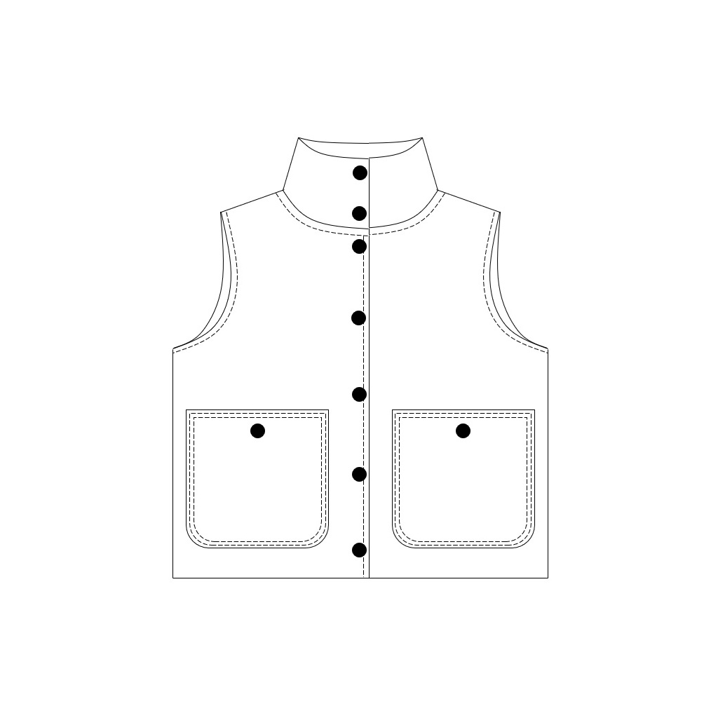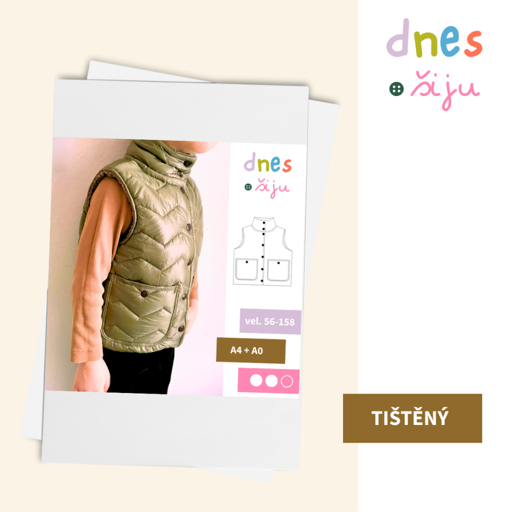 Střih na dětskou prošívanou vestu s podšívkou, stojáčkem a kapsami.