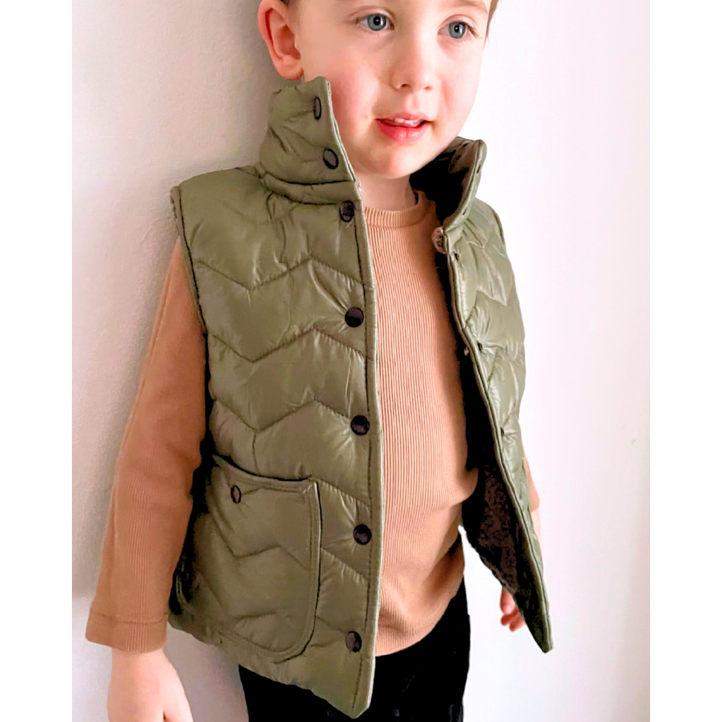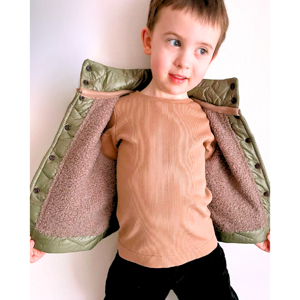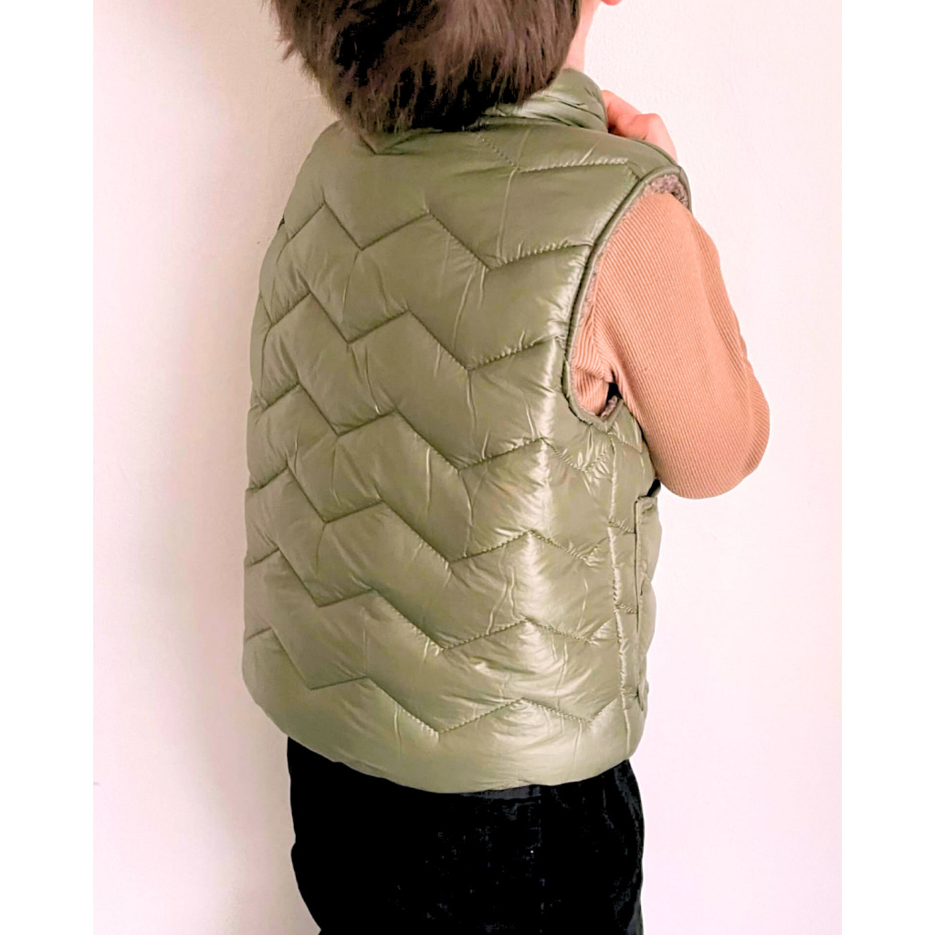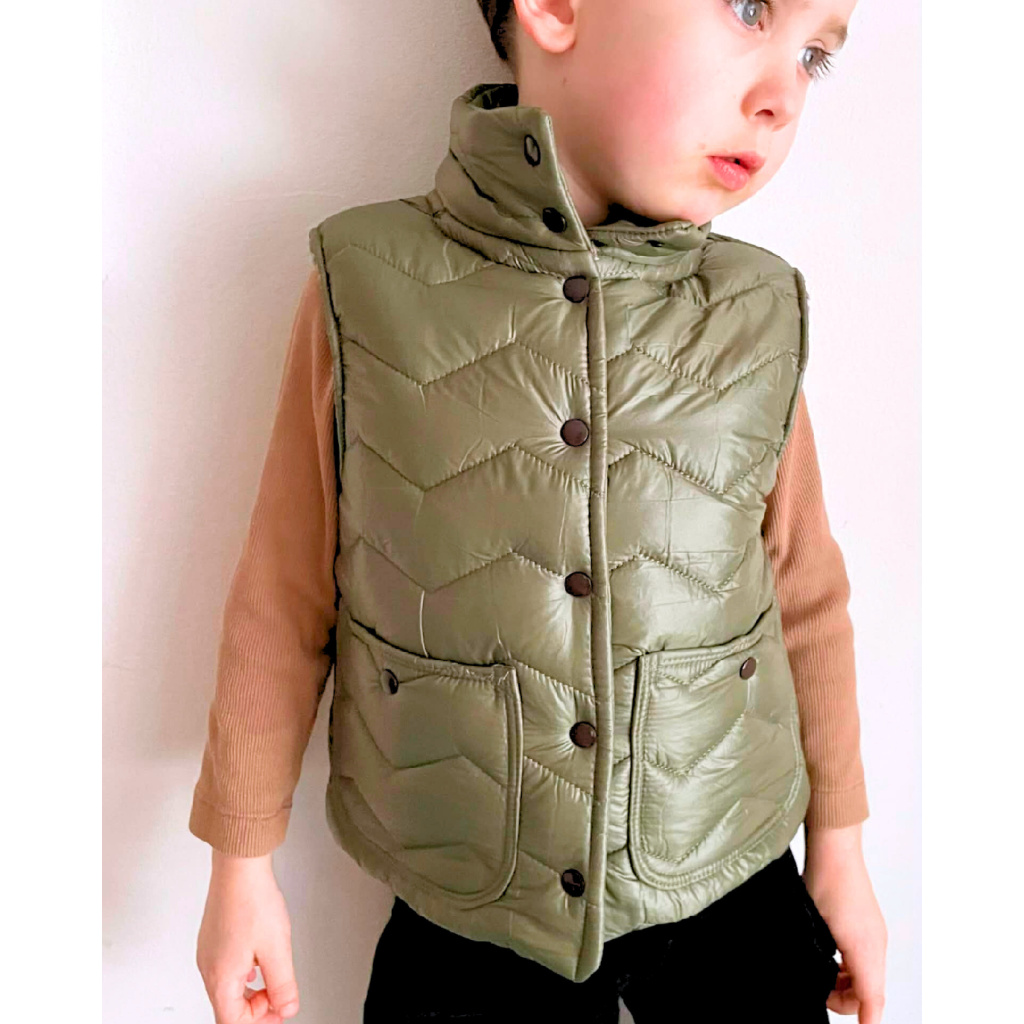 Střih na dětskou prošívanou vestu s podšívkou, stojáčkem a kapsami.