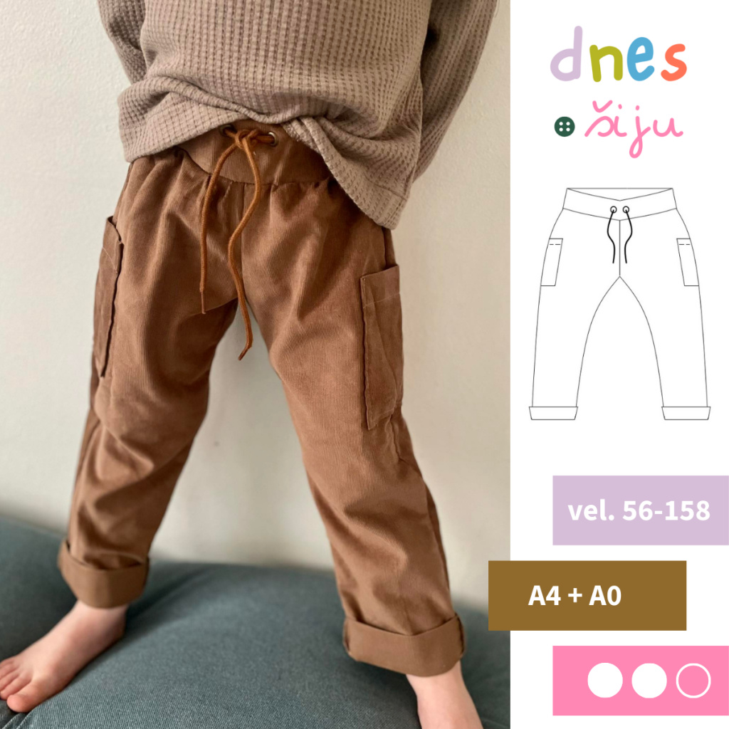 Tištěný střih najdete tady: https://www.dnessiju.cz/detske-kalhoty-rustic-tisteny-strih/