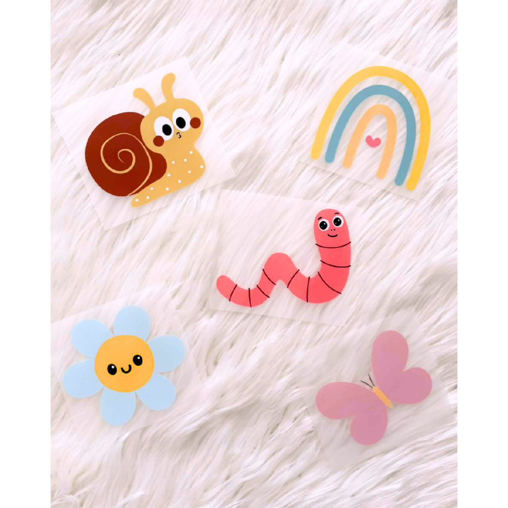 Limitovaná jarní kolekce nažehlovaček ČAU JARO !. 2 sady menších motivů a 5 velkých samostatných nažehlovaček s jarní a hravou tématikou.